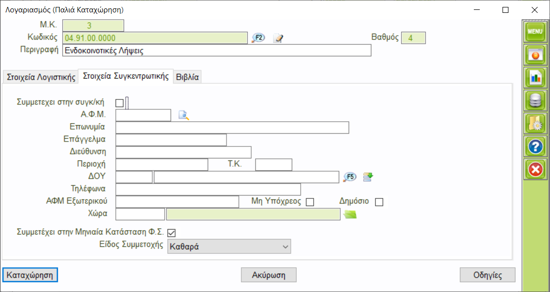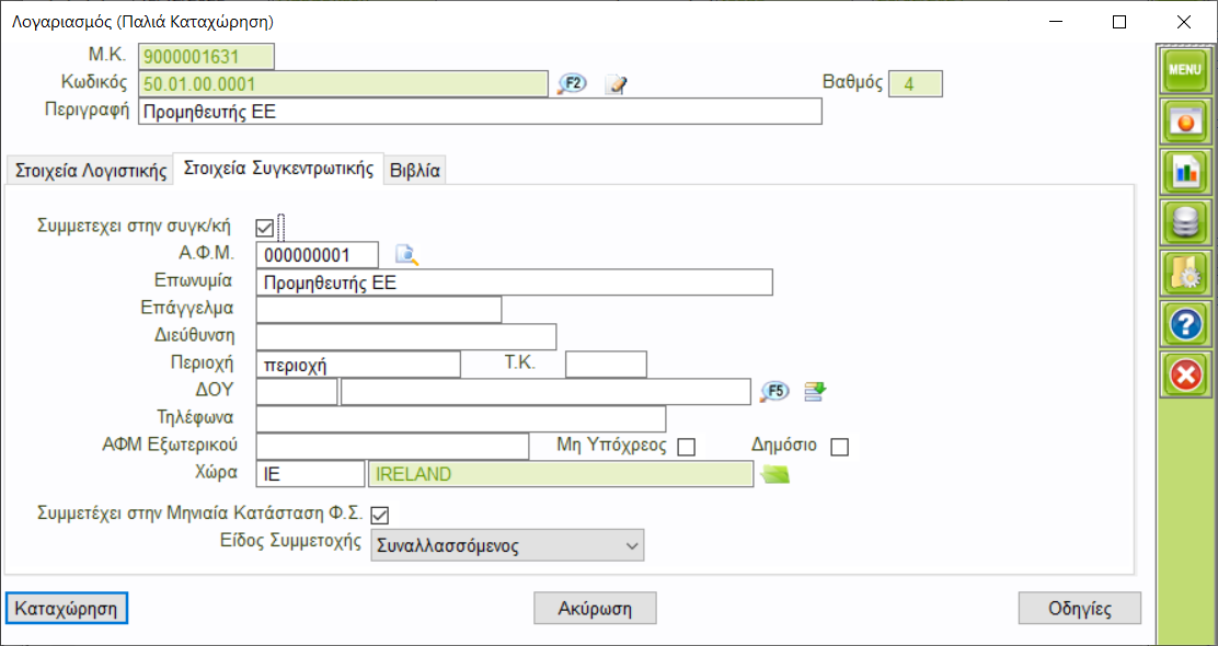 Ειδος Συμμετοχής= Συναλλασσόμενος