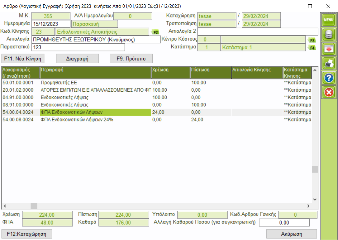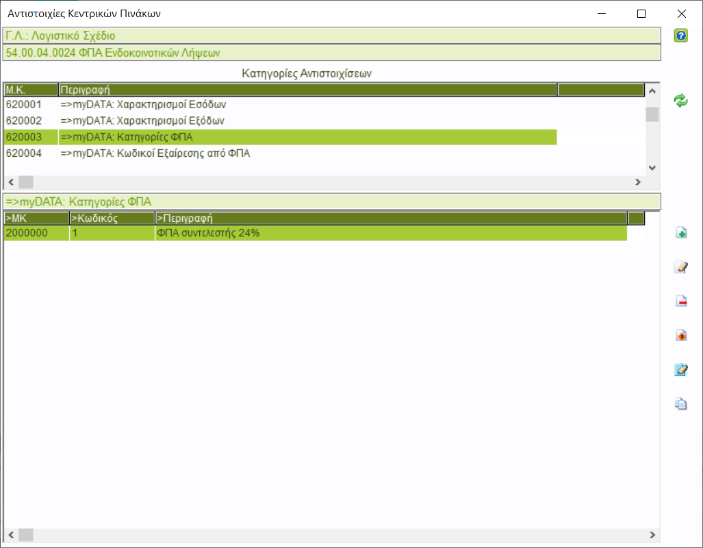 Κατηγορίες ΦΠΑ = 1 ΦΠΑ Συντελεστης 24%