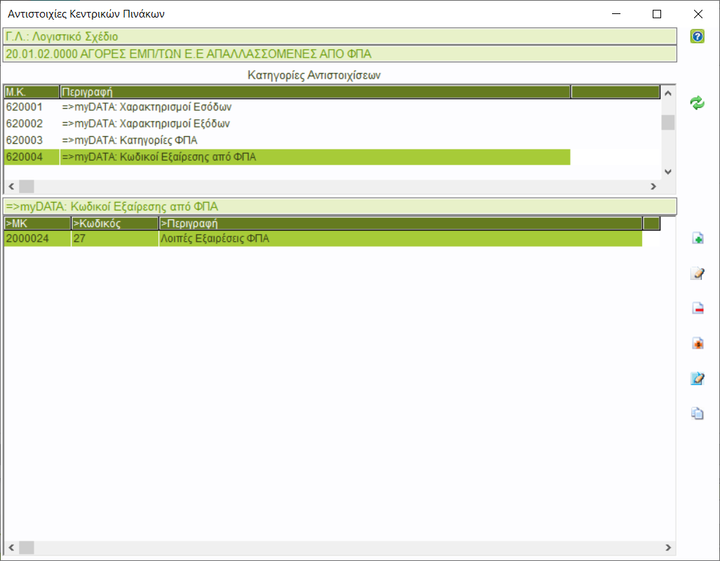 Έπειτα απο μέσα απο το λογαριασμο απο [Δράσεις->Αντιστοιχίες κεντρικων πινάκων] θα ορίσετε: