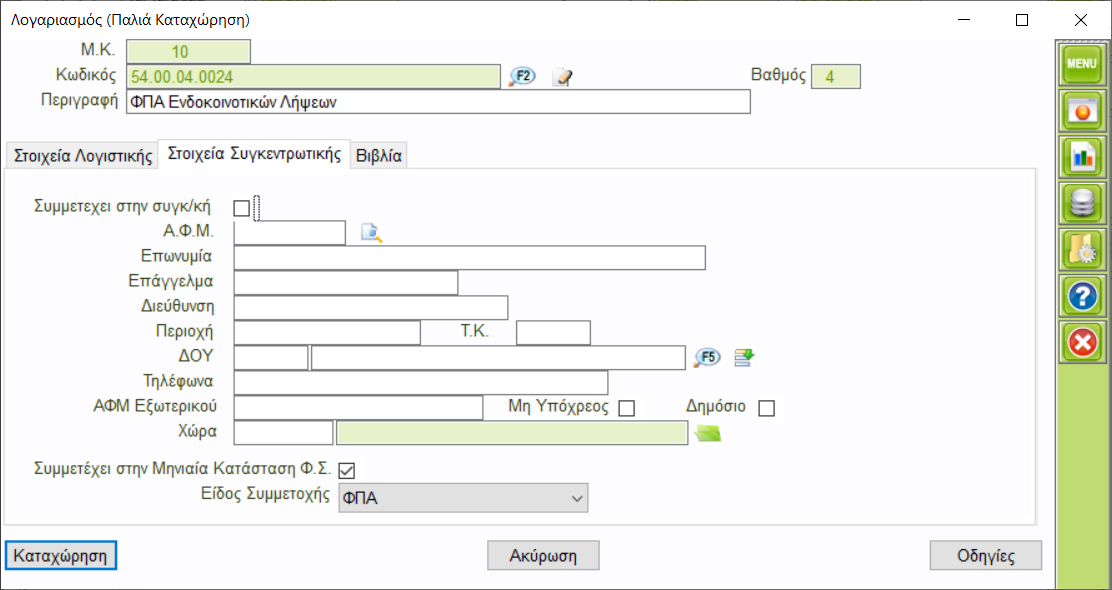Βήμα 4: Λογαριασμός ΦΠΑ Εσόδου Ενδοκοινοτικών Λήψεων